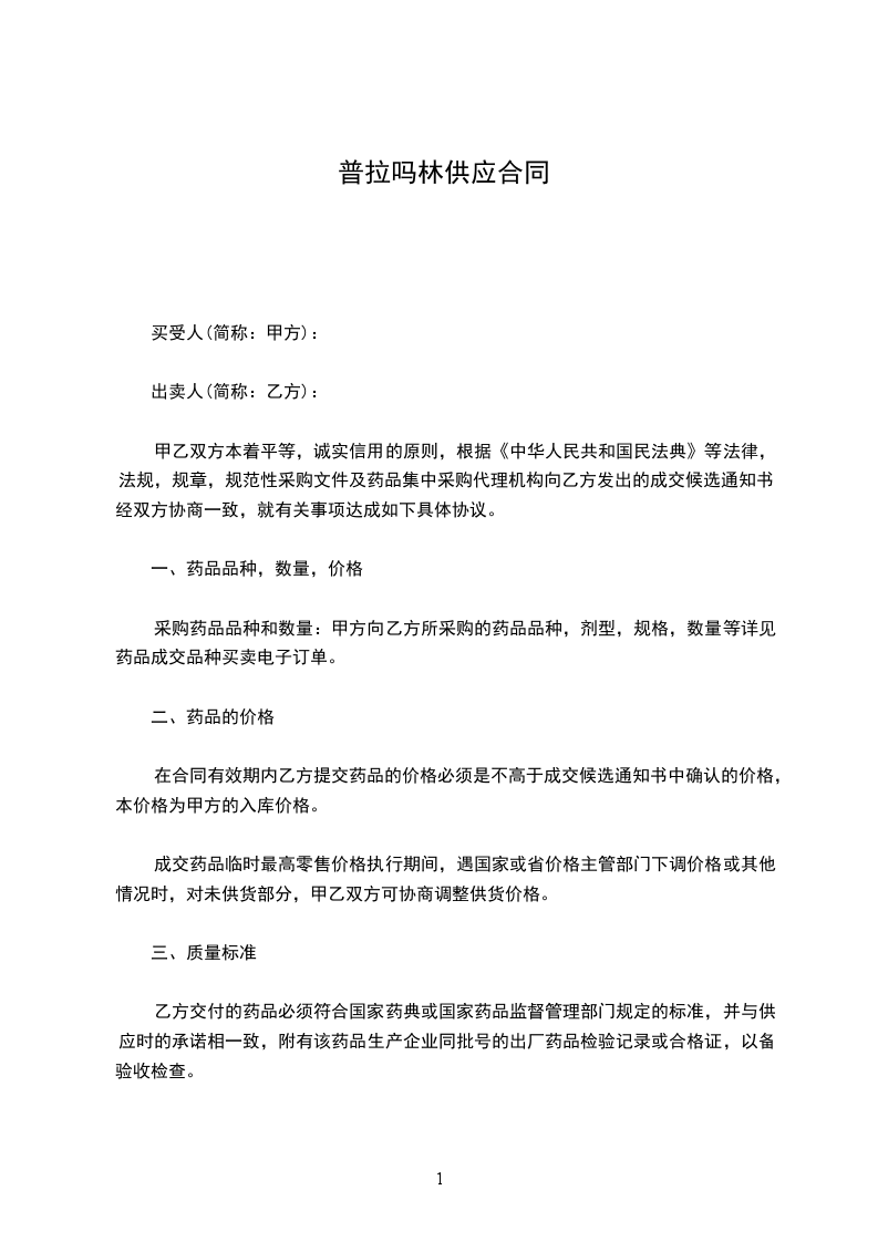 乙方交付的药品必须符合国家药典或国家药品监督管理部门规定的标准,并与供应时的承诺相一致,附有该药品生产企业同批号的出厂药品检验记录或合格证,以备验收检查。