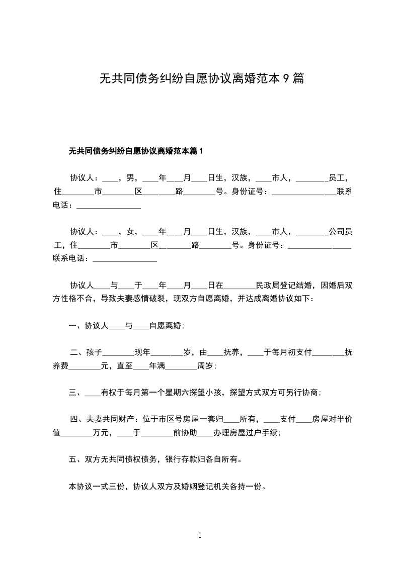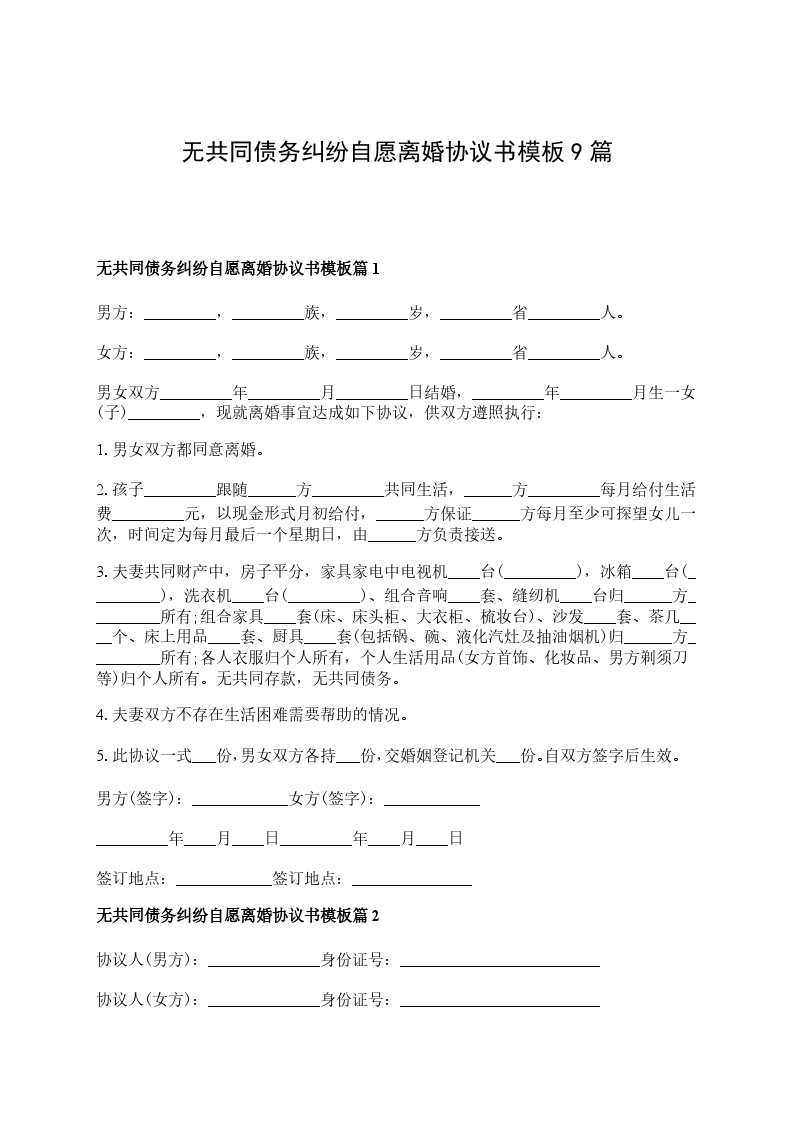 □双方确认在婚姻关系存续期间没有发生任何共同债务,任何一方如对外负有债务的,由负债方自行承担。