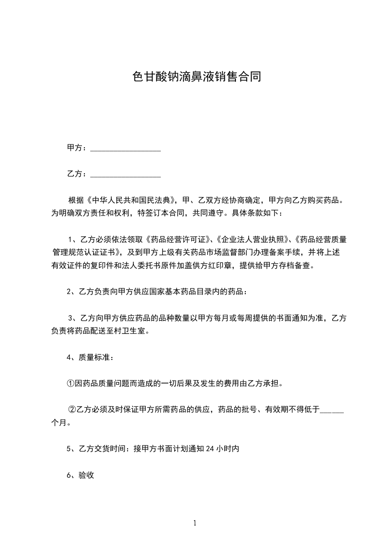 色甘酸钠滴鼻液销售合同