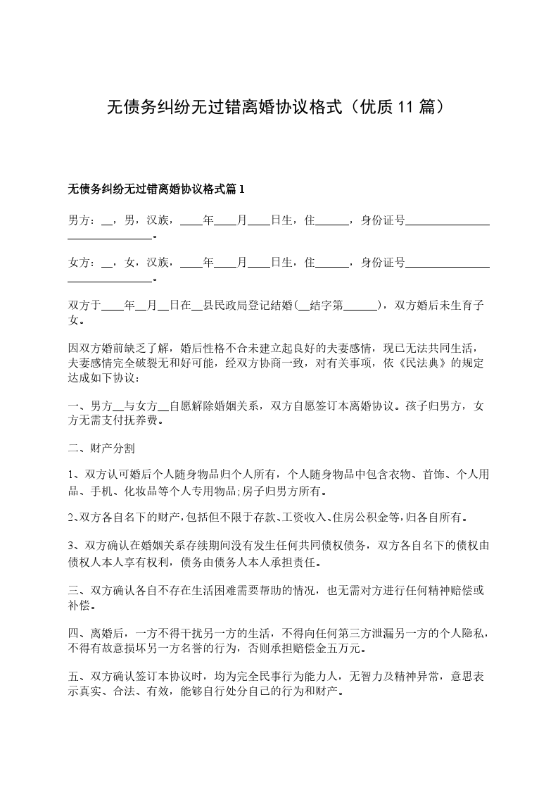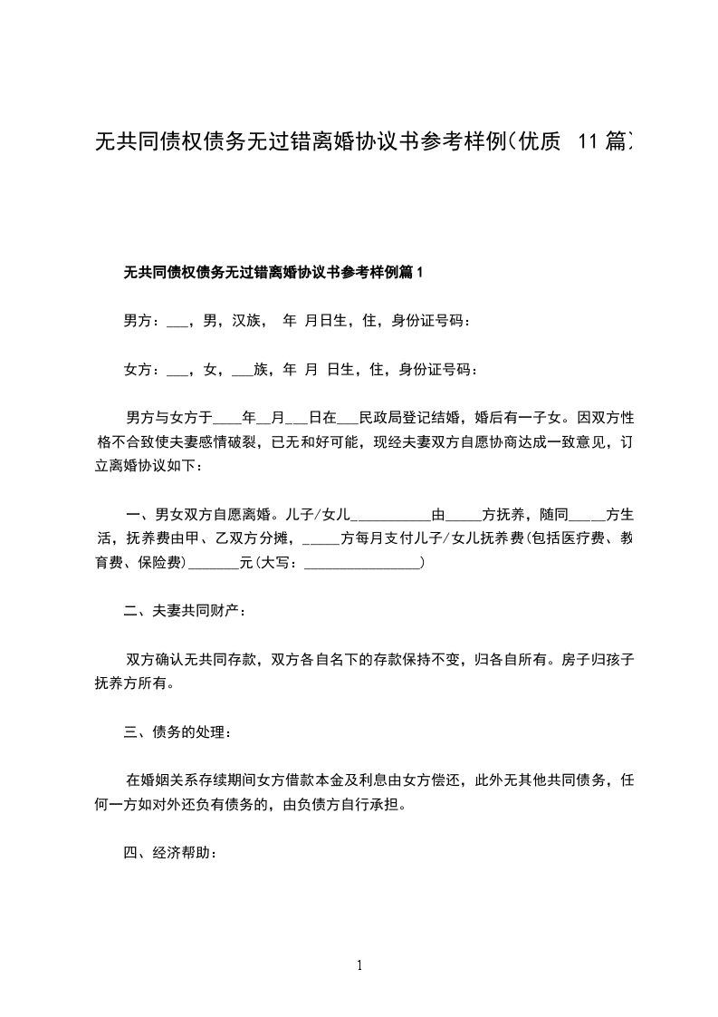 1、甲乙双方确认在婚姻关系存续期间没有发生共同债务。
