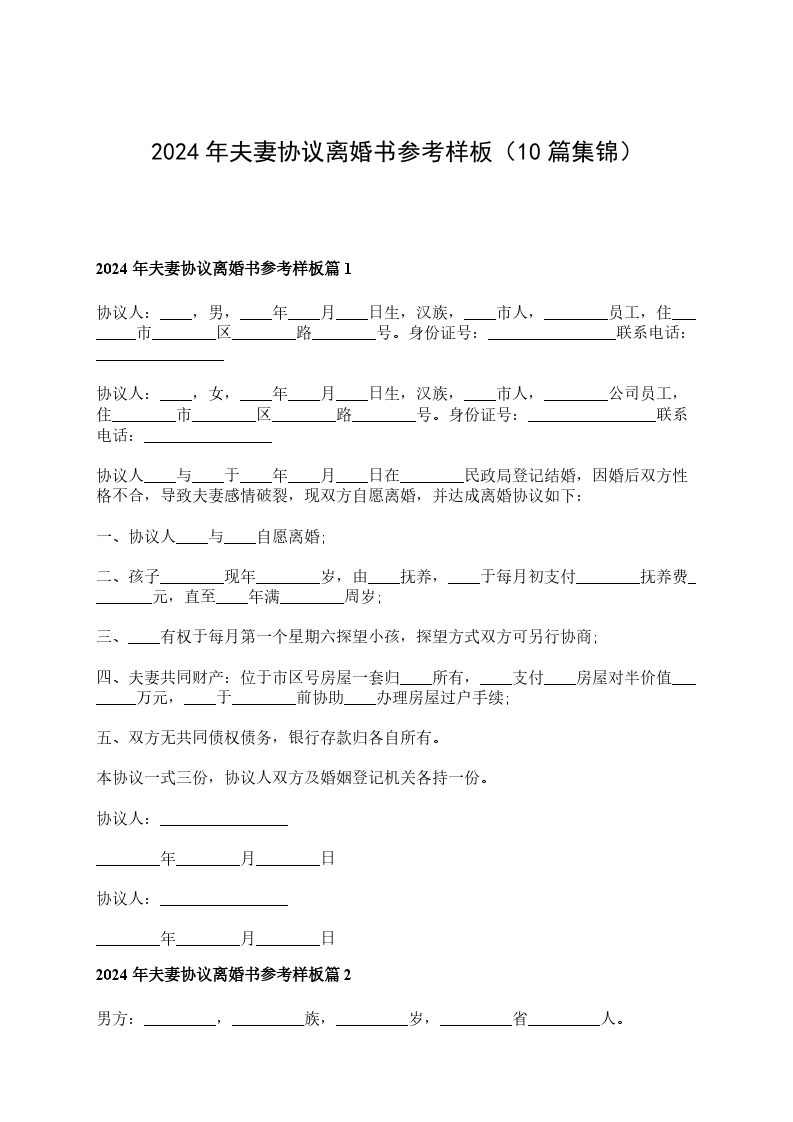 协议人双方于_______年_______月_______日在_______(结婚登记机关)办理结婚登记手续。因双方性格不合无法共同生活,夫妻感情已完全破裂,双方同意离婚并达成如下协议:
