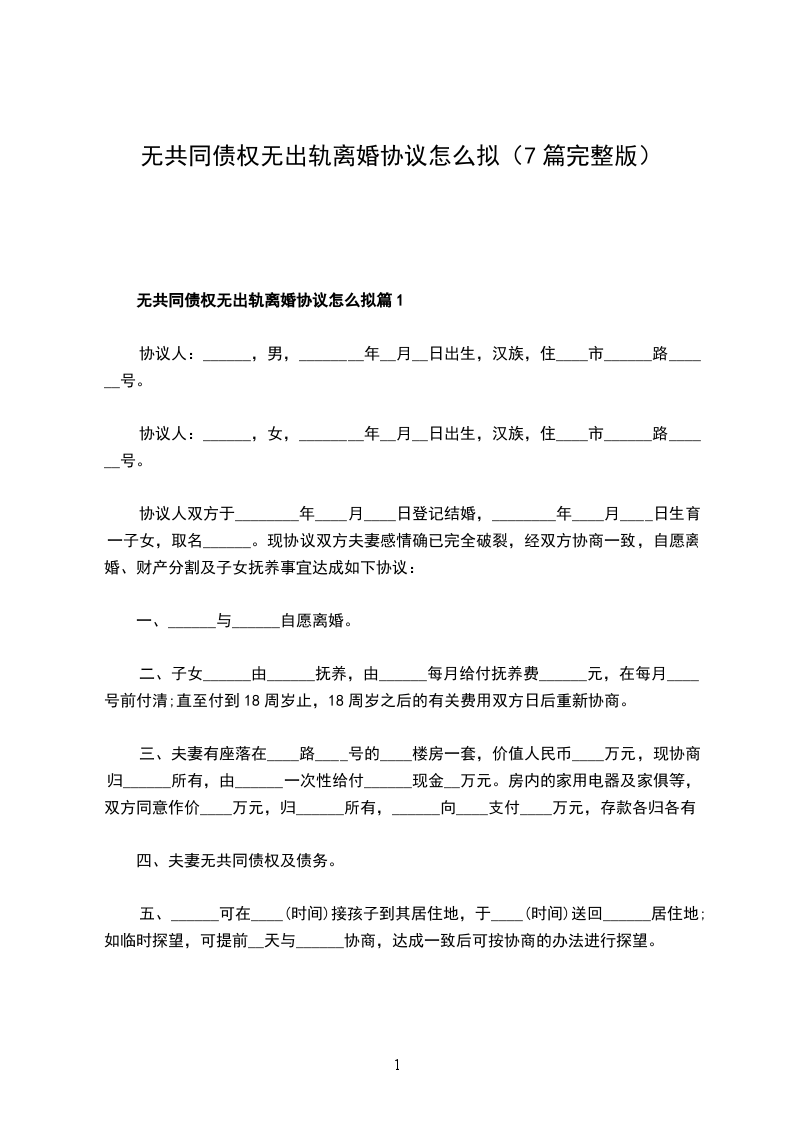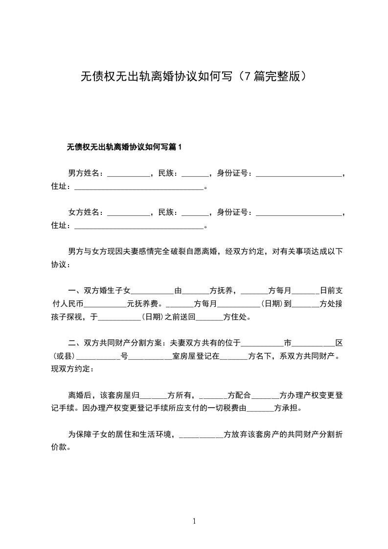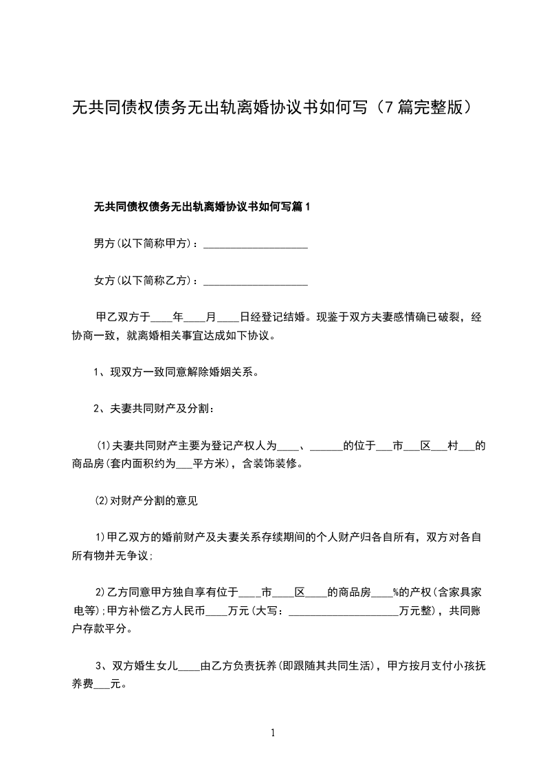 无债务无出轨协议离婚书怎么写篇7