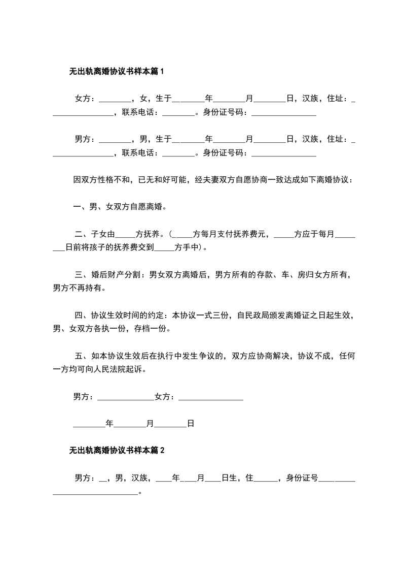无债务无出轨协议离婚书怎么写篇2