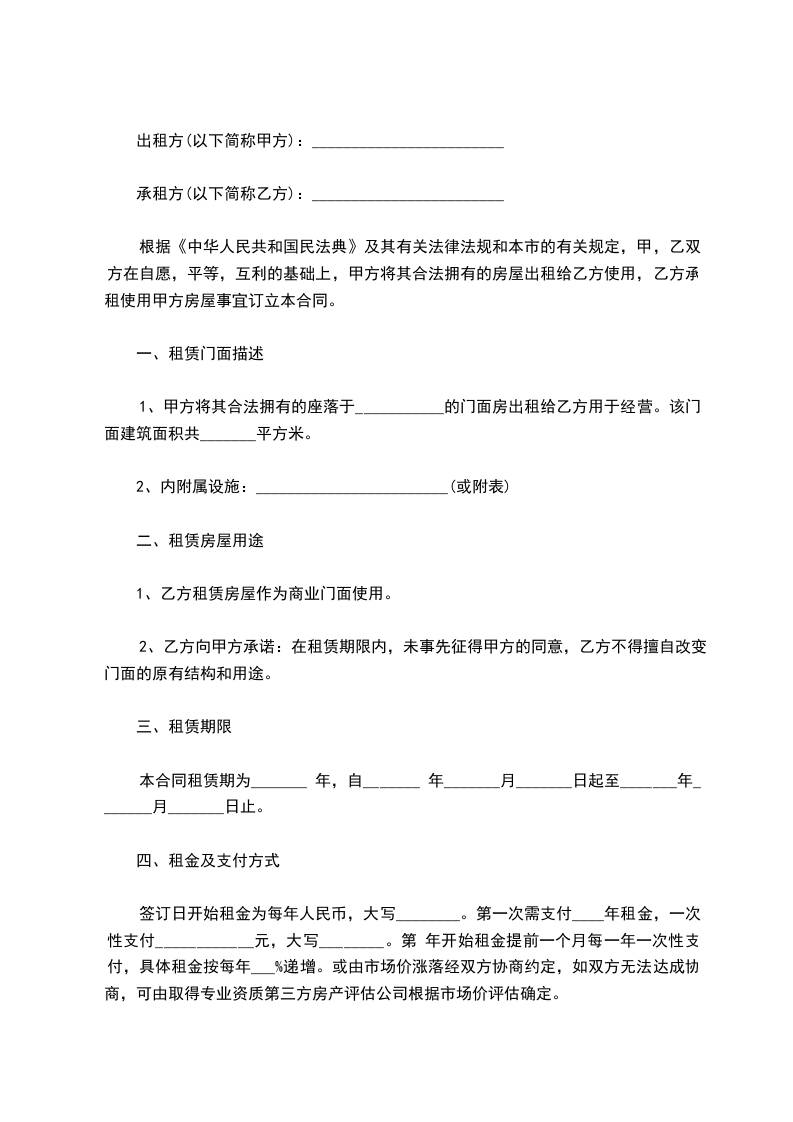 一、租赁房屋座落地点:______________市______________路门面房_______号