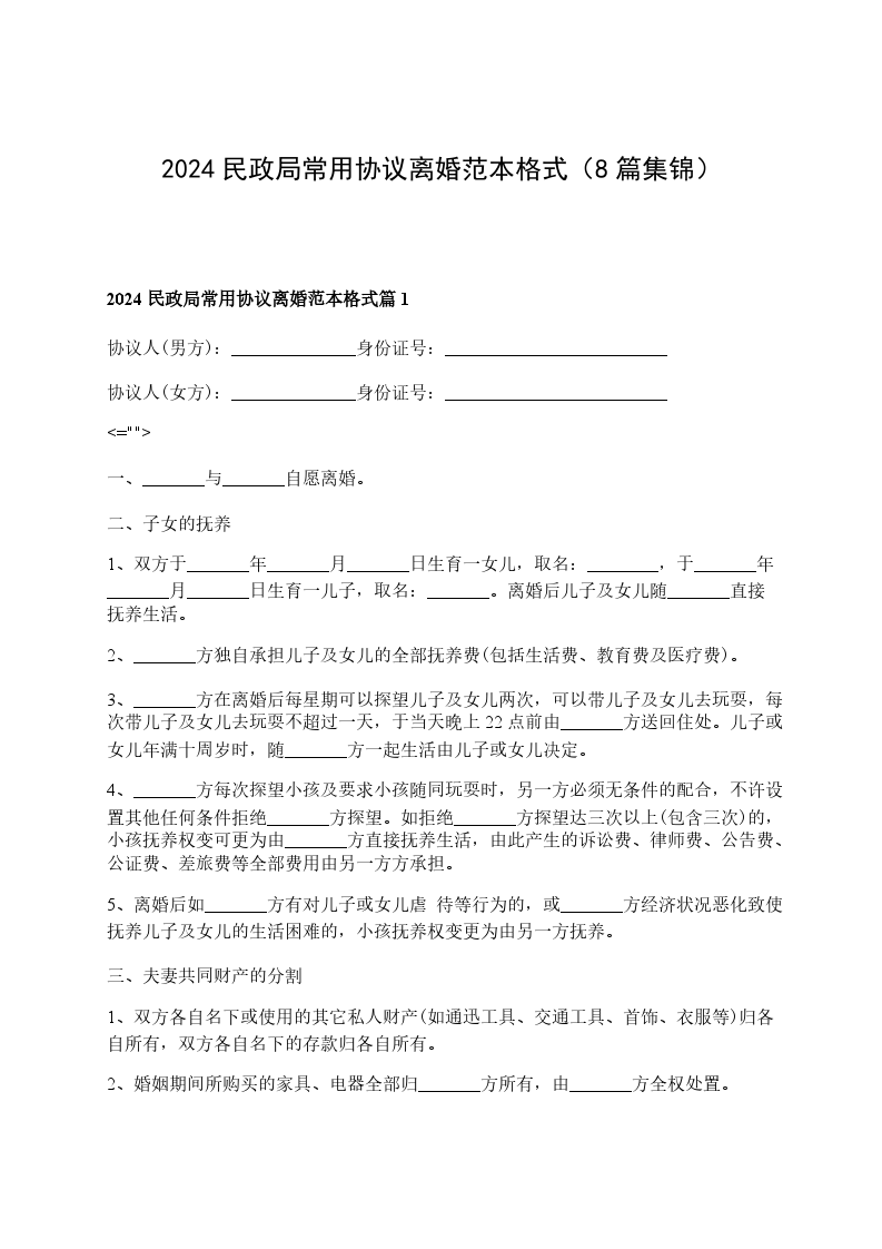 (本协议一式_______份,当事人双方各执_______份,交婚姻登记机关存档备案_______份)