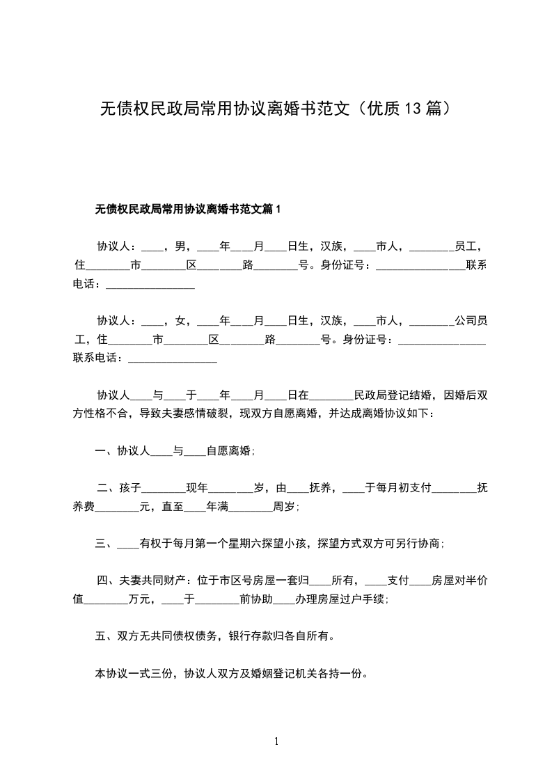 八、本协议一式三份,男、女双方各执一份,婚姻登记机关存档一份。