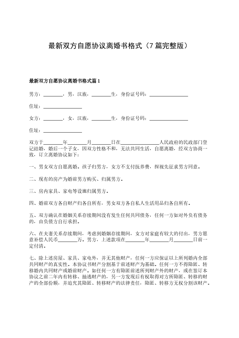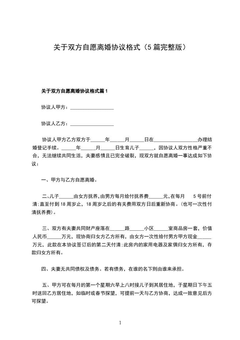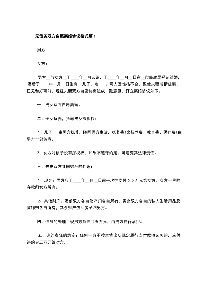 本协议一式______份,双方各执一份,婚姻登记机关存档一份,在双方签字,并经婚姻登记机关办理相应手续后生效。