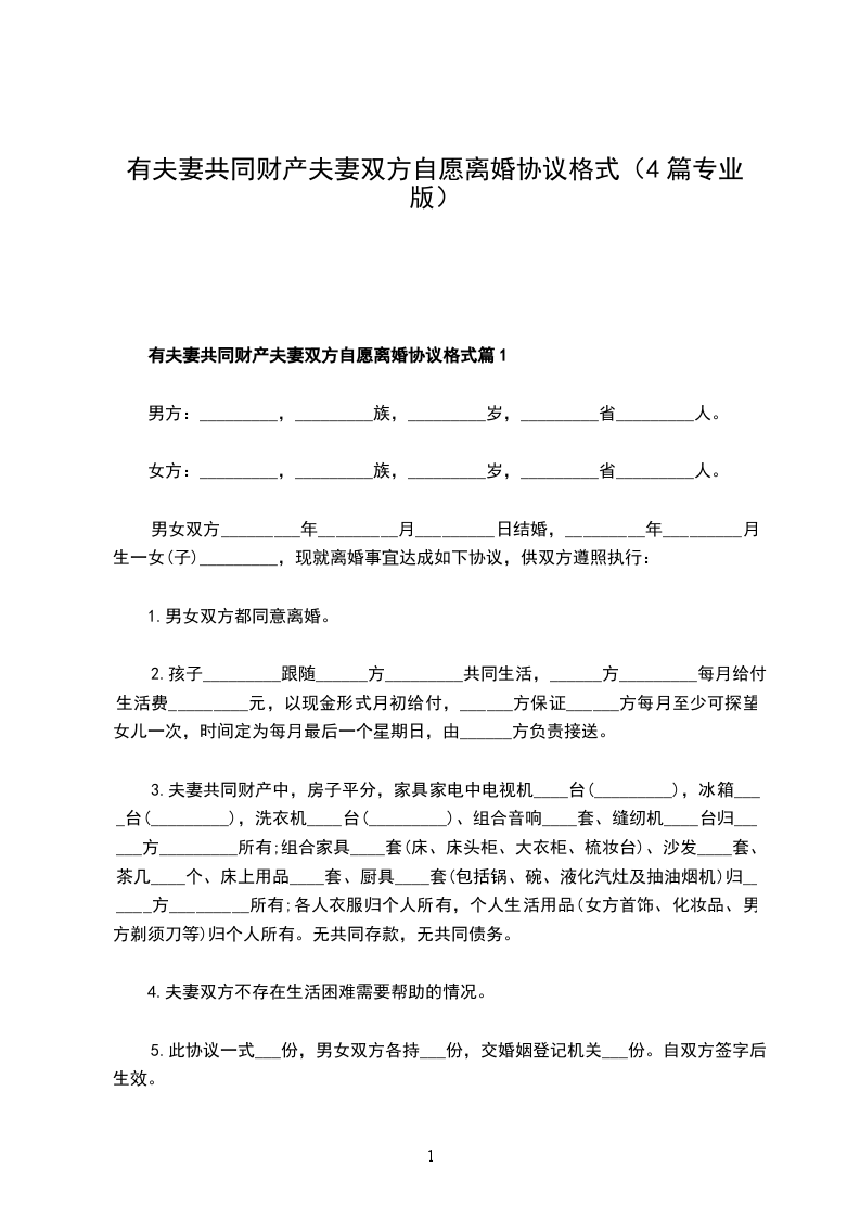 2、本协议一式三份,男女双方各执一份,婚姻登记机关存档一份。