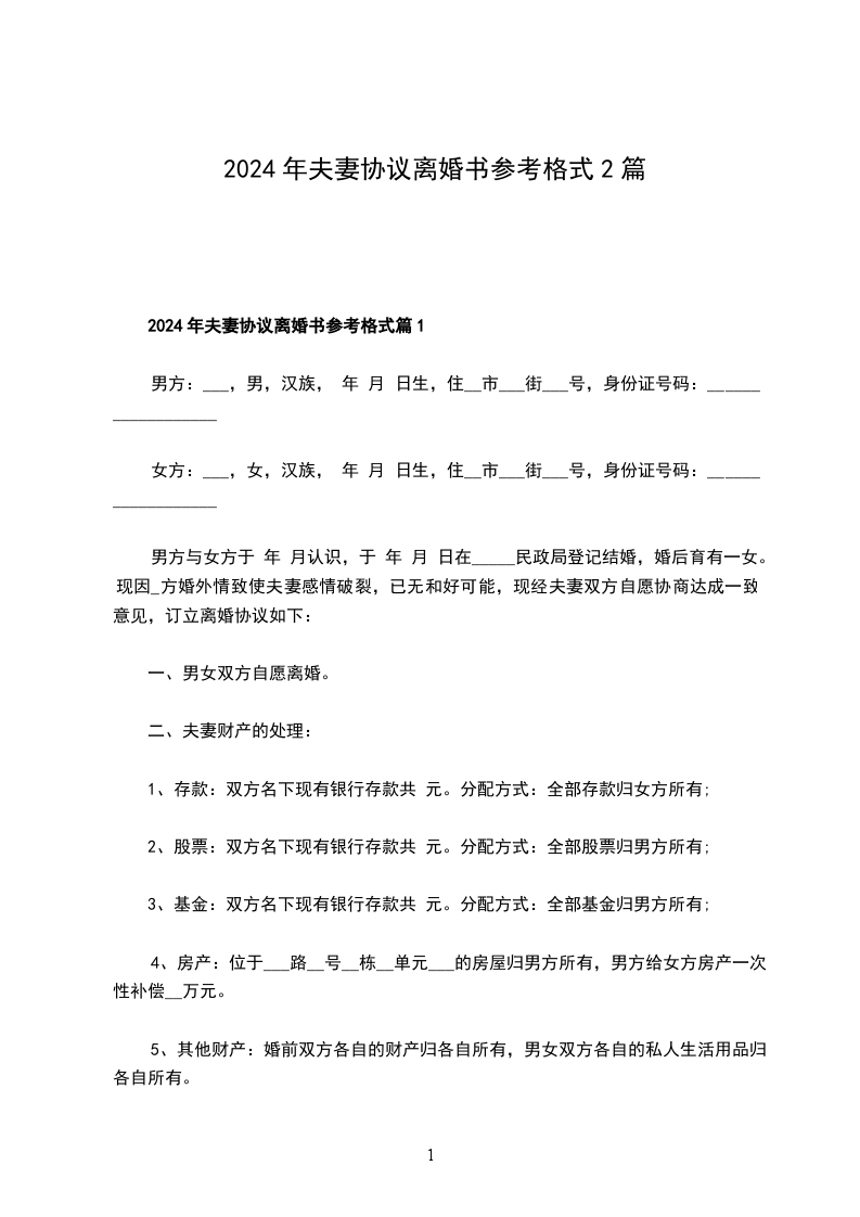 1、【存款】双方婚姻关系存续期间,目前共有存款____元,其中男方账户____元,女方账户____元,双方同意,____方在本协议签订之日起3日内给付____方____元。