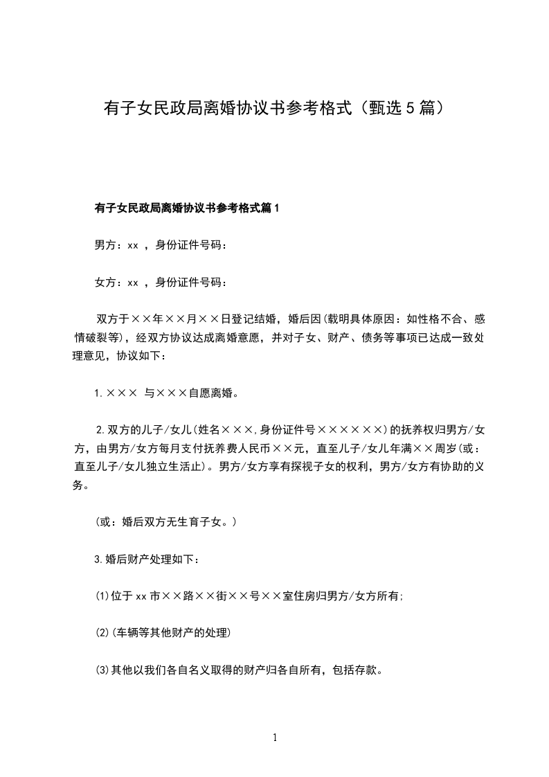 本协议一式三份。男、女双方各执一份,婚姻登记机关存档一份,自婚姻登记机颁发《离婚证》之日起生效。