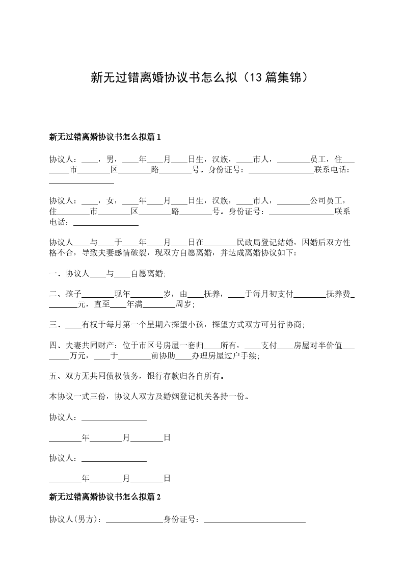 注:本协议一式______份,男女双方各______份,婚姻登记机关_____份。