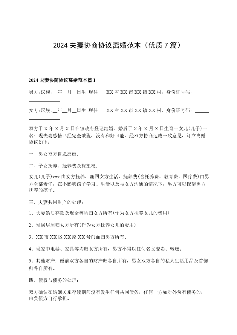 2024年夫妻协商协议离婚范本怎么写篇7
