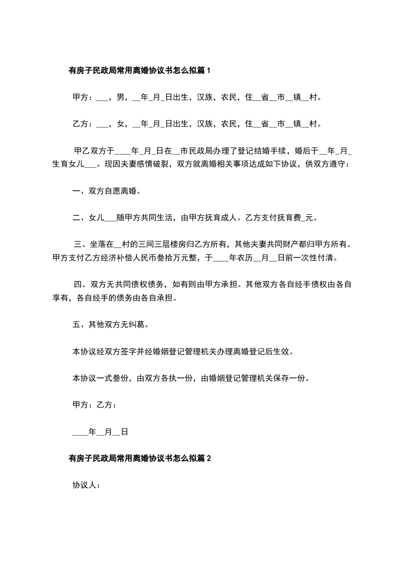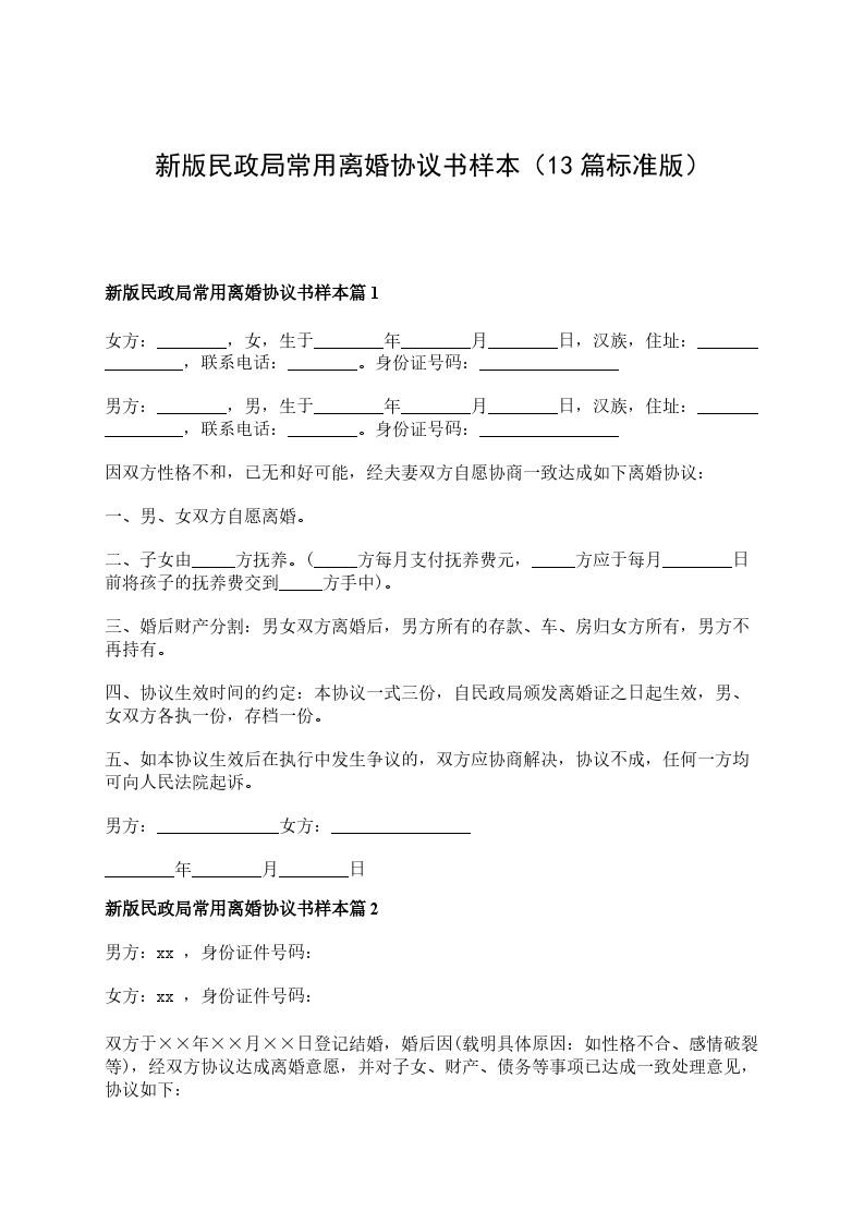 新版民政局常用离婚协议书样本篇13