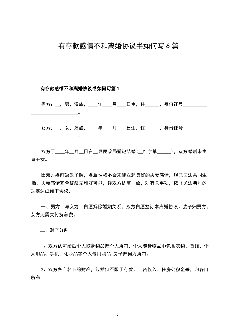 有存款感情不和离婚协议如何写篇1