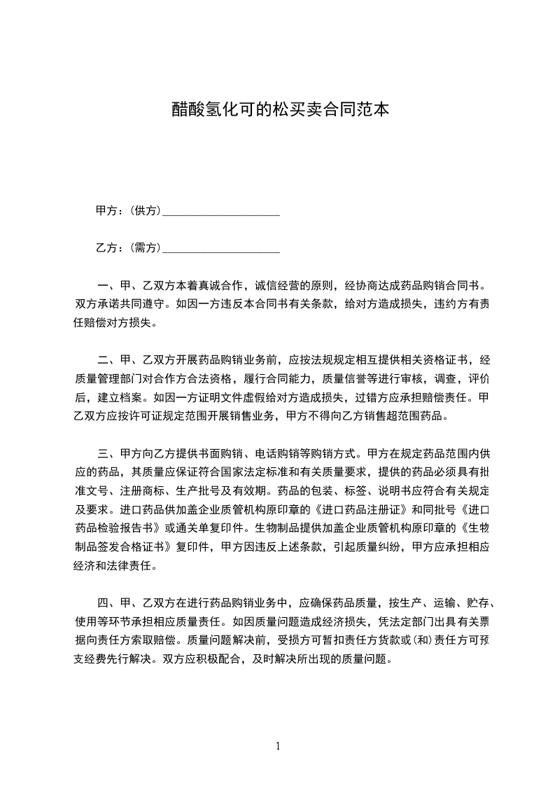 醋酸氢化可的松买卖合同范本