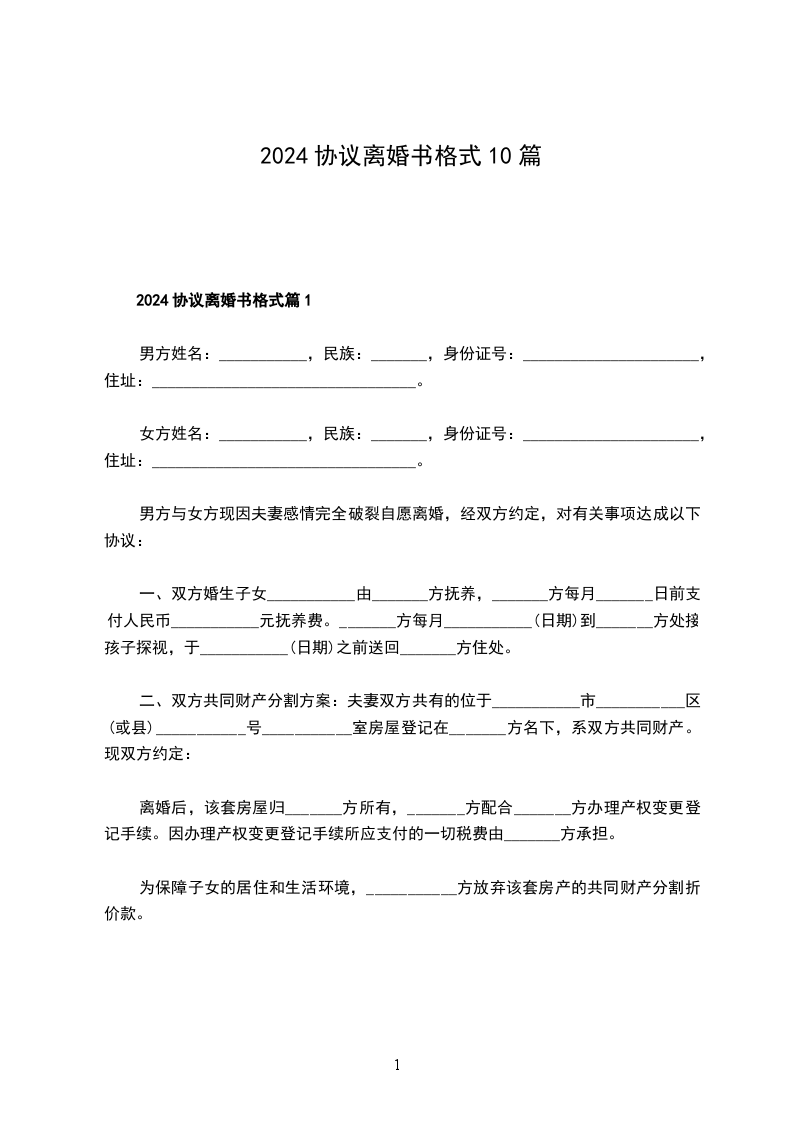 2024协议离婚书格式篇10