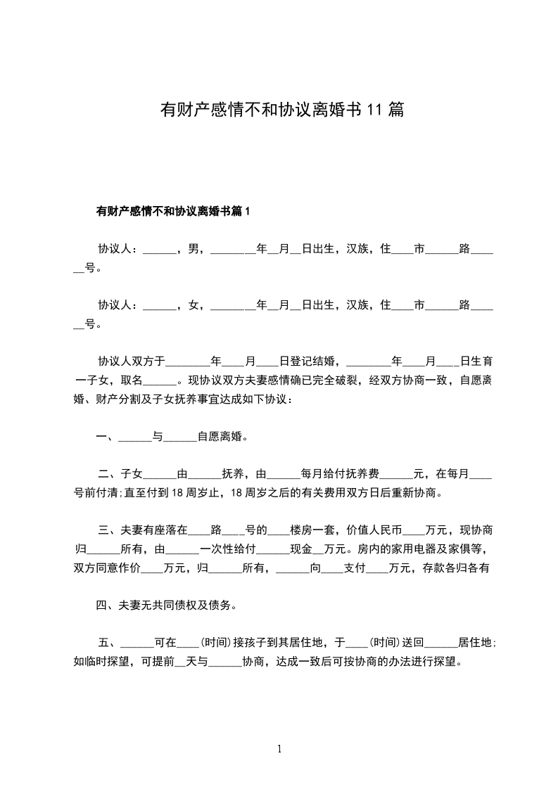 协议人双方于________年____月____日登记结婚,________年____月____日生育一子女,取名______。现协议双方夫妻感情确已完全破裂,经双方协商一致,自愿离婚、财产分割及子女抚养事宜达成如下协议: