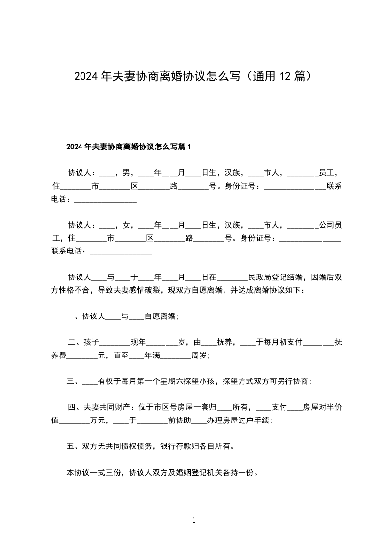 2024年夫妻协商离婚协议怎么写篇12