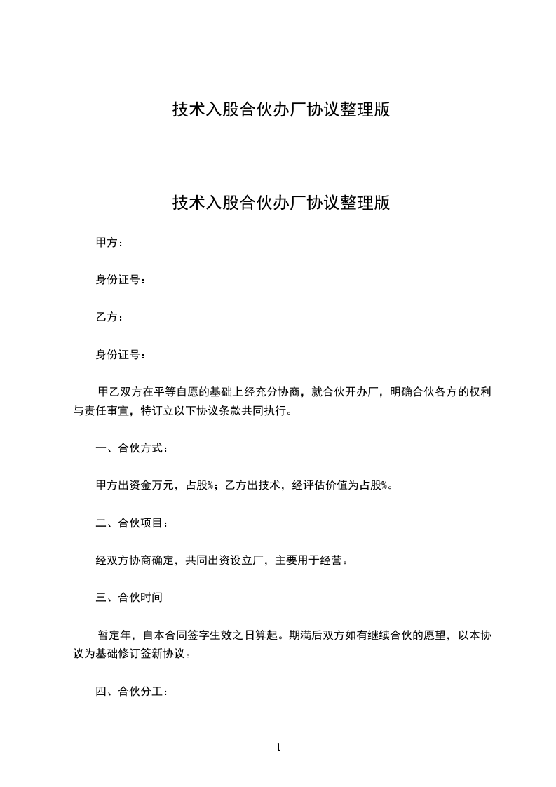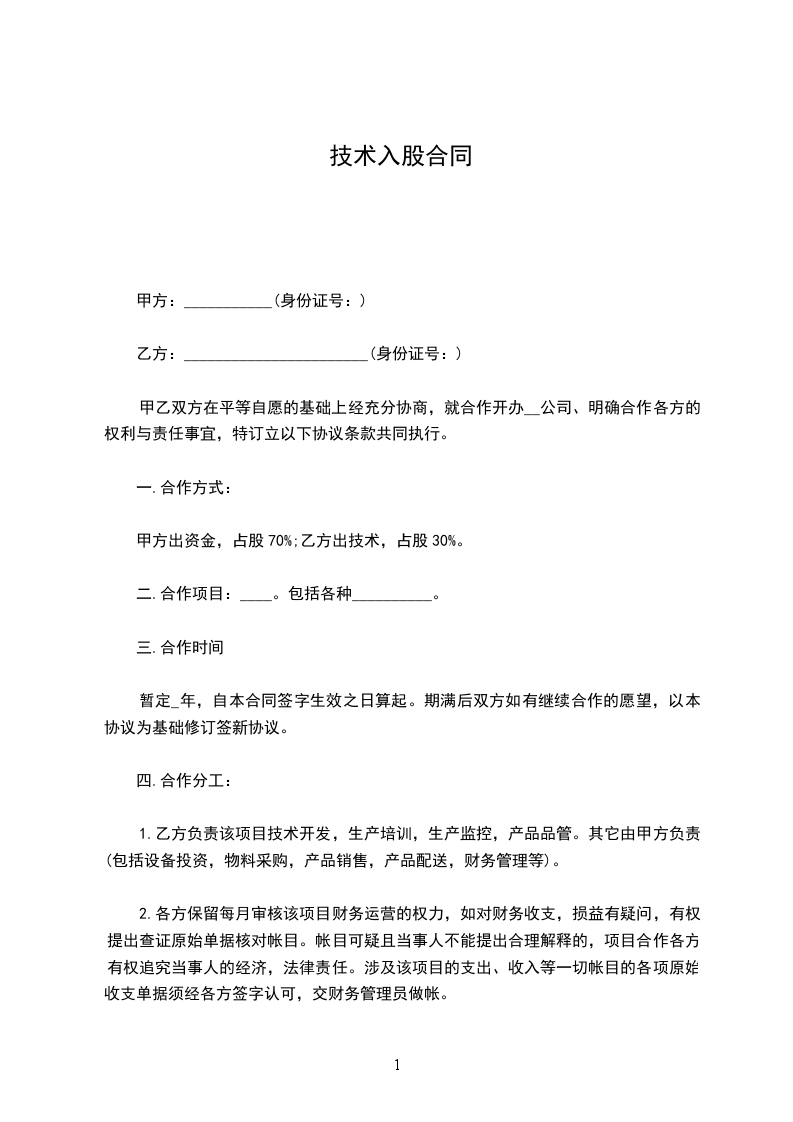1、工资分配:_______________丙方技术入股,除去分红每月固定工资______元。