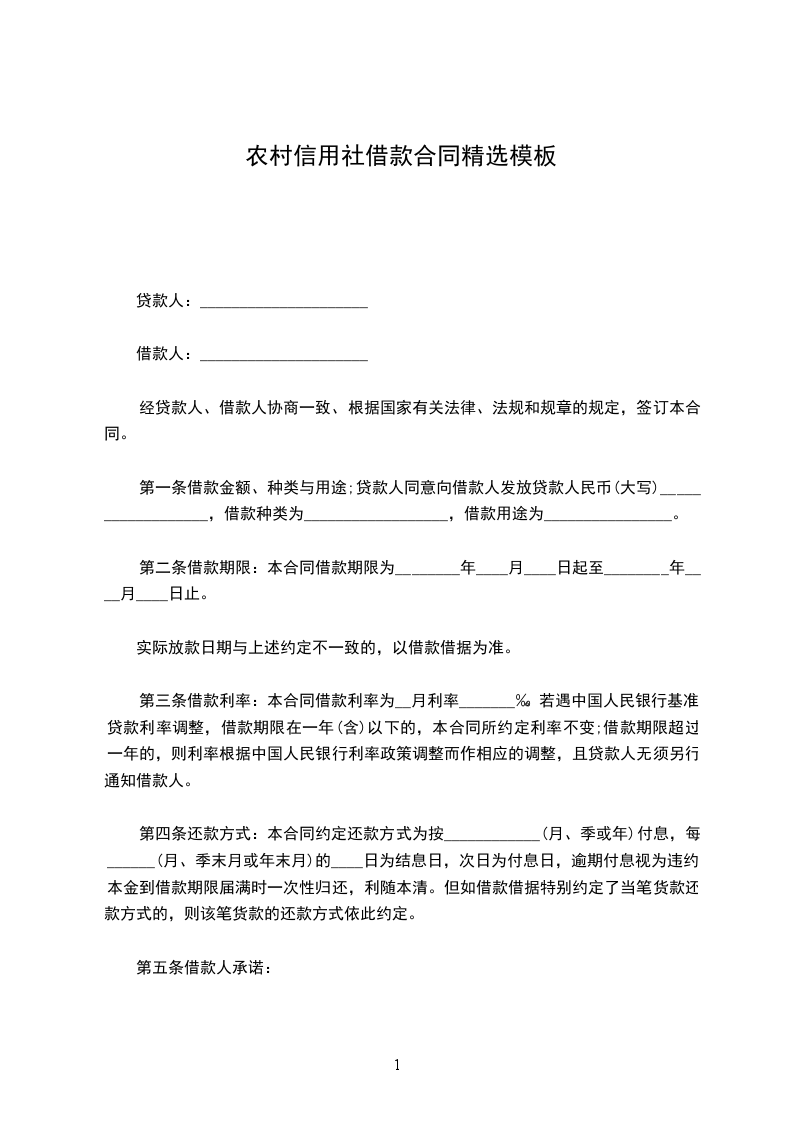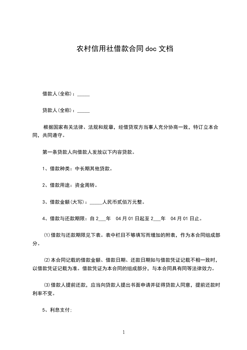 第一条 贷款人向借款人发放以下内容贷款。