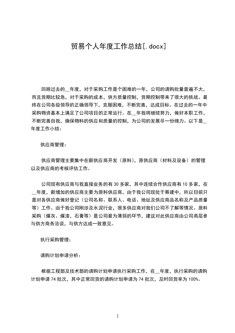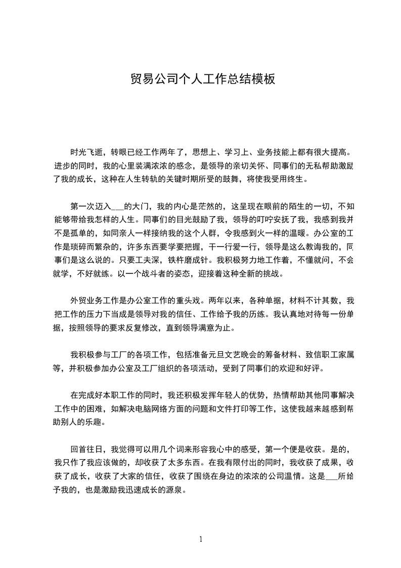 足,自我检讨,并取长补短,完善自我,成为公司乃至社会有用的人才。结束语:借助公司一句警言:同心同创同享。真的要做到最好,一定要融入公司的企业文化和发展进度,一直都把公司看得很亲,因为我要做的就是把公司当做自己家和自己的产品,并为他们负责。希望在贸易部能发挥出自己的才能,并挖掘潜能,争取为贸易部带来更大的效益。