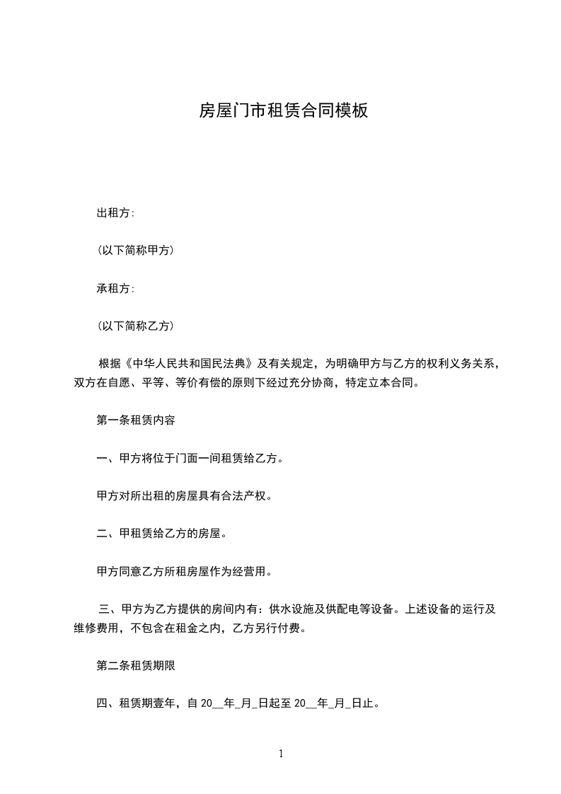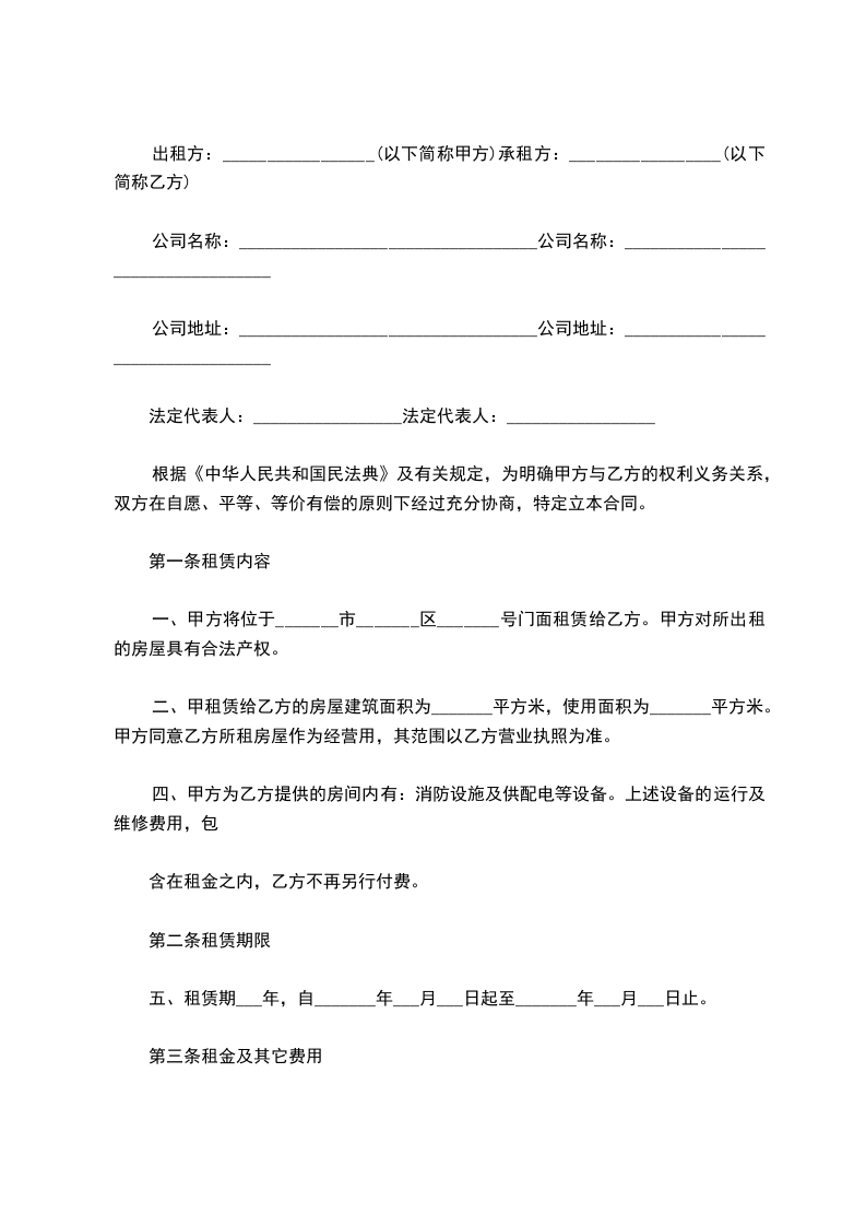 4-1 甲、乙双方约定,该房屋每日每平方米建筑面积租金为( 币) ________元,月租金总计为( 币)________元。(大写:______________万 ________千________百________拾________元 角整)。该房屋租金________(年/月)内不变。自第________(年/月)起,双方可协商对租金进行调整。有关调整事宜由 (甲/乙)双方在补充条款中约定。