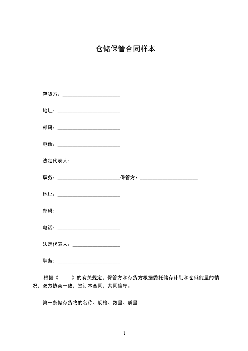 第一条 储存货物的名称、规格、数量、质量