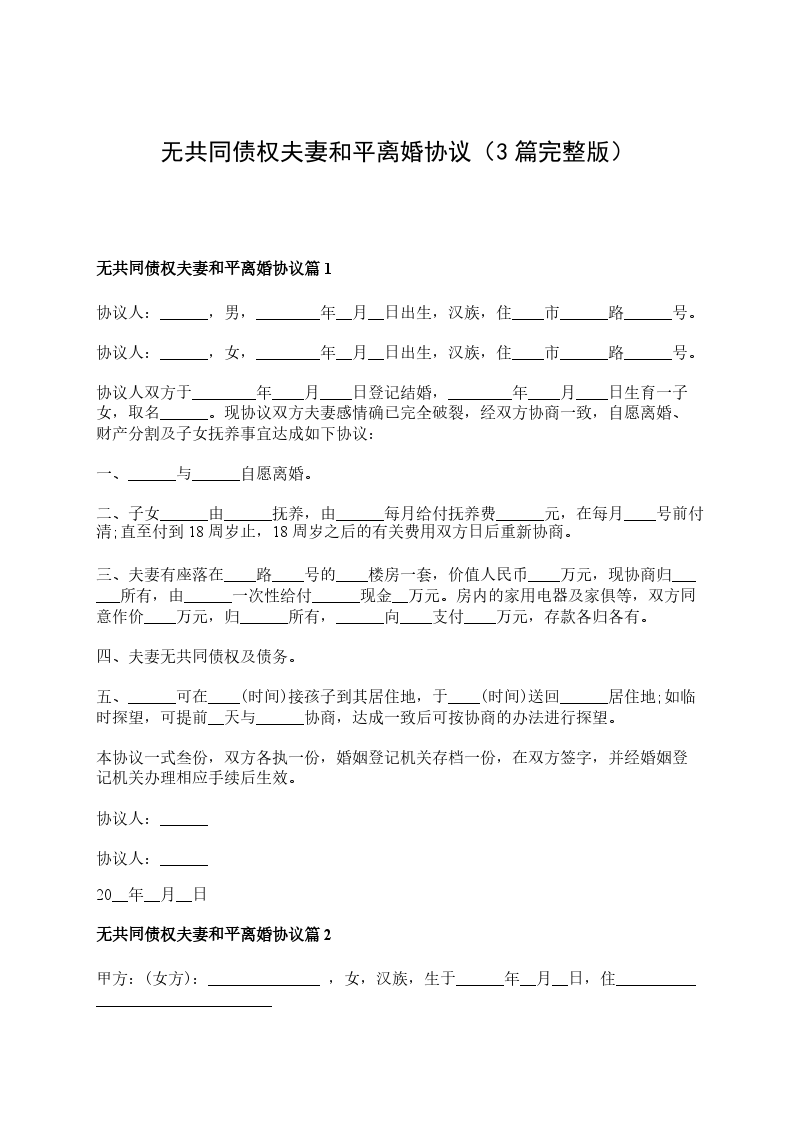 2024年夫妻和平协议离婚范本如何写篇3