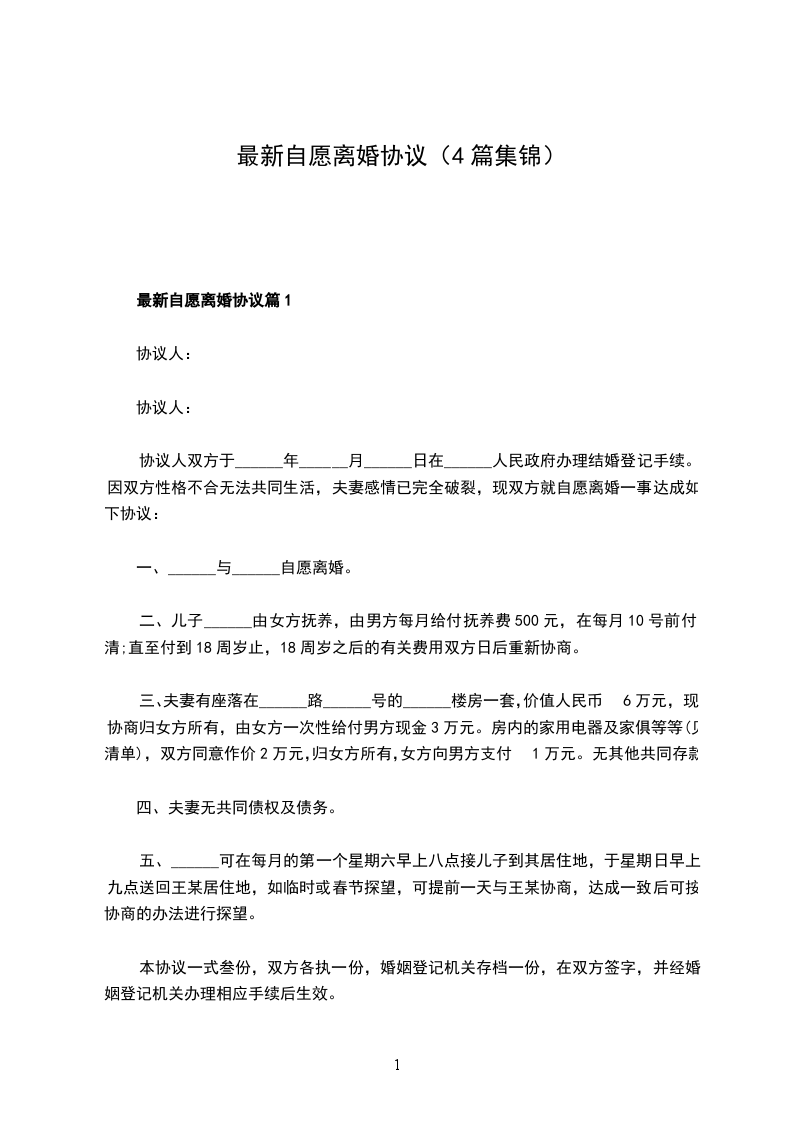 最新自愿协议离婚书格式篇1