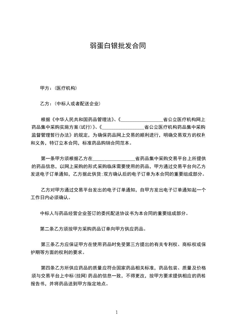 弱蛋白银批发合同