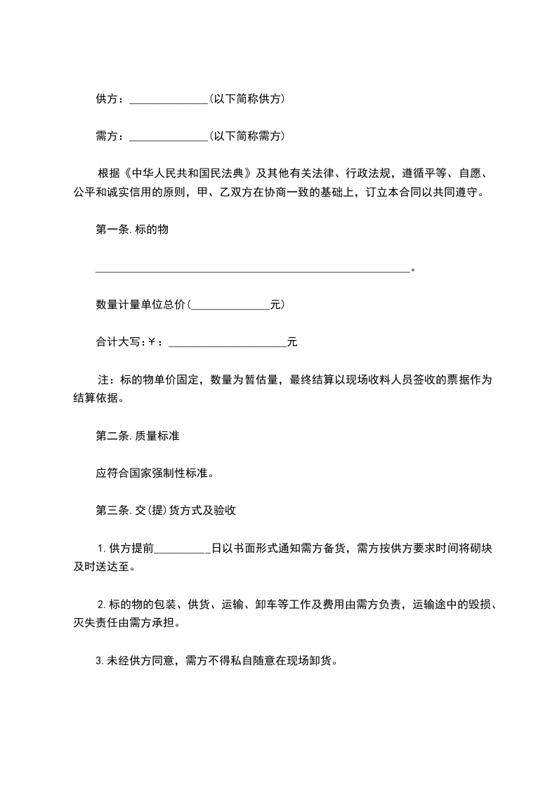 甲方(需方)盖章:__________乙方(供方)盖章:__________