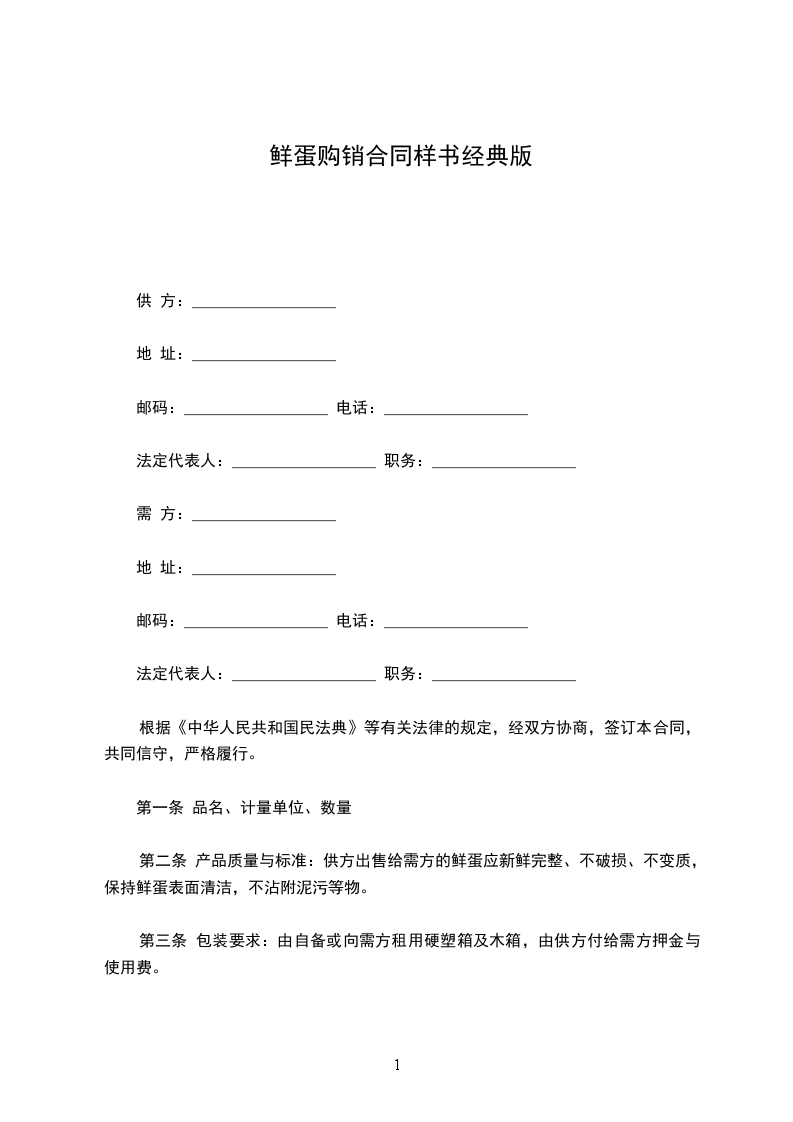 第二条 产品质量与标准:供方出售给需方的鲜蛋应新鲜完整、不破损、不变质,保持鲜蛋表面清洁,不沾附泥污等物。