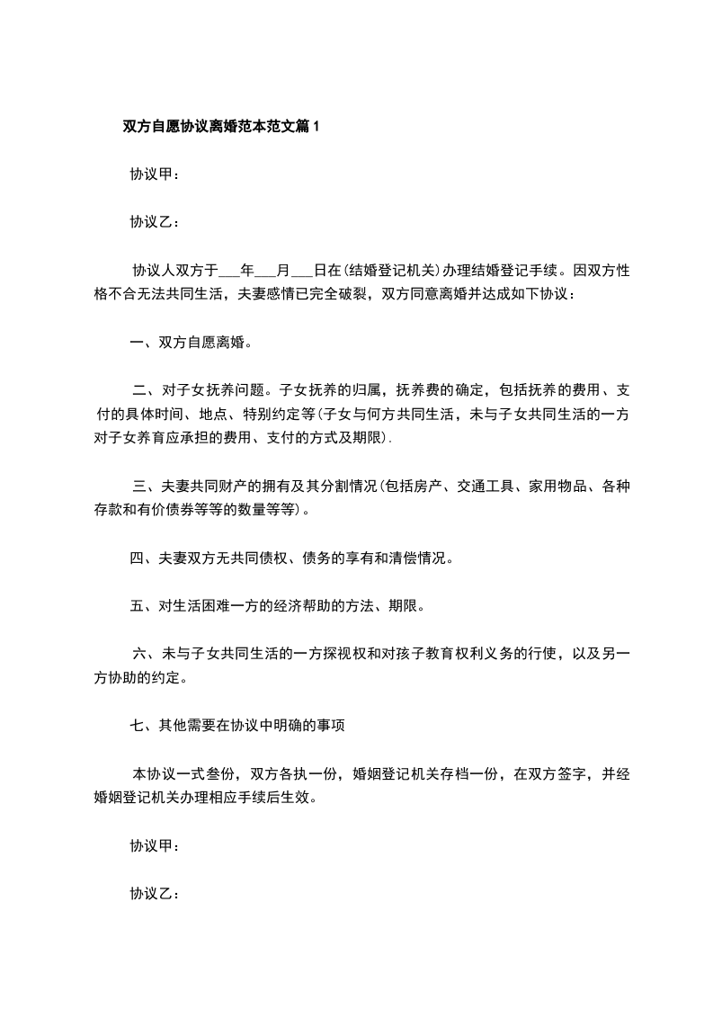 7.本协议一式三份,男女双方各持一份,婚姻登记机关存档一份。