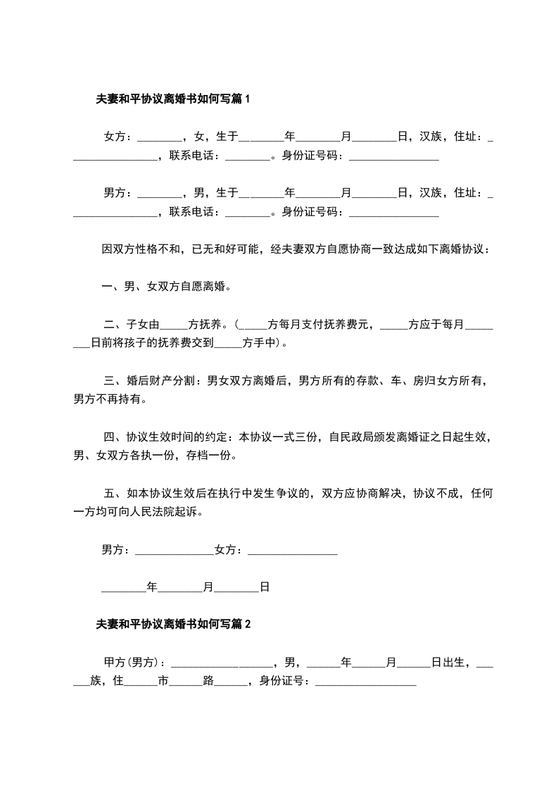 男方与女方于______年___月认识,于______年___月___日在______民政局登记结婚,两人因性格不合,致使夫妻感情破裂,已无和好可能,现经夫妻双方自愿协商达成一致意见,订立离婚协议如下: