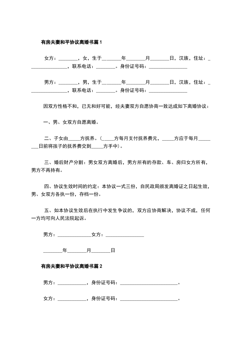 2、房产:位于_______________的房屋(房产证号:____________)归男方所有。