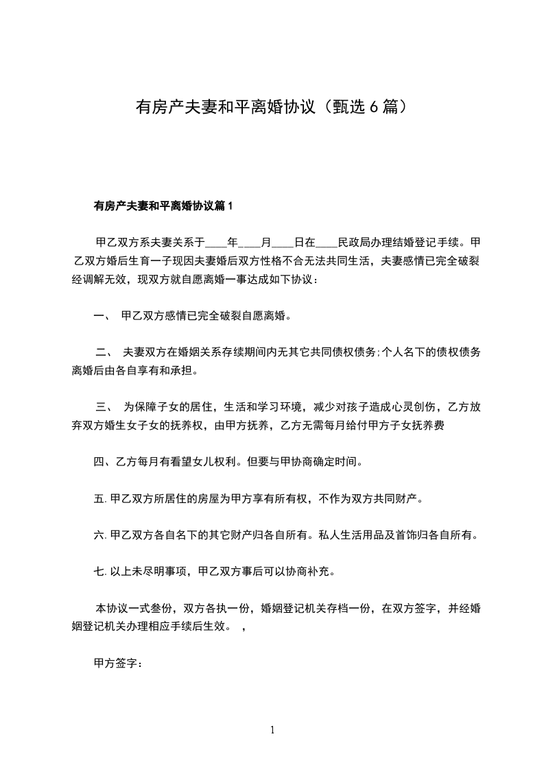三、夫妻有座落在______路______号的______楼房一套,价值人民币6万元,现协商归女方所有,由女方一次性给付男方现金3万元。房内的家用电器及家俱等等(见清单),双方同意作价2万元,归女方所有,女方向男方支付1万元。无其他共同存款。