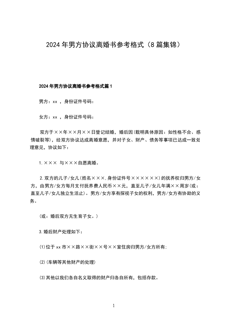 7.本协议一式三份,男女双方各持一份,婚姻登记机关存档一份。