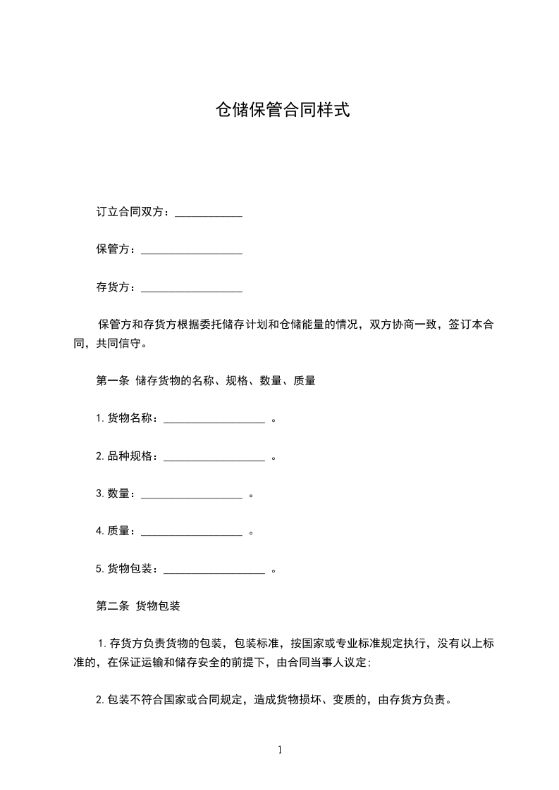 1.存货方负责货物的包装,包装标准,按国家或专业标准规定执行,没有以上标准的,在保证运输和储存安全的前提下,由合同当事人议定;