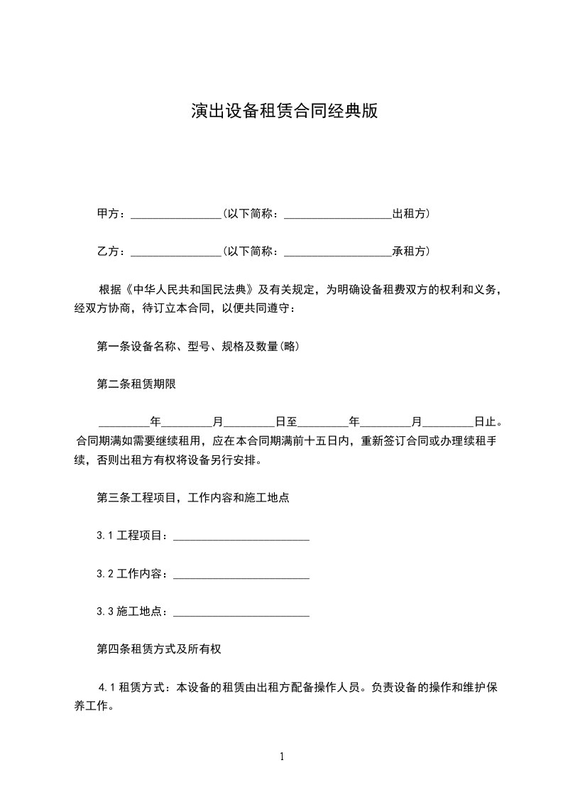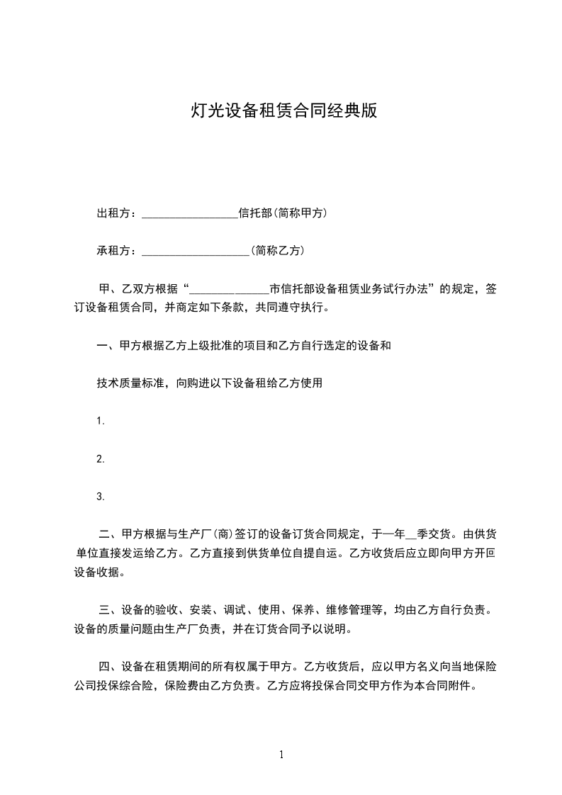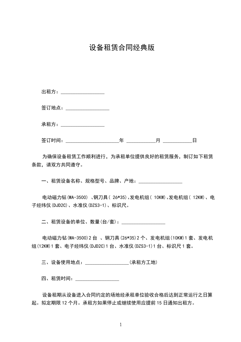 为确保设备租赁工作顺利进行,为承租单位提供良好的租赁服务,制订如下租赁条款,请双方共同遵守。