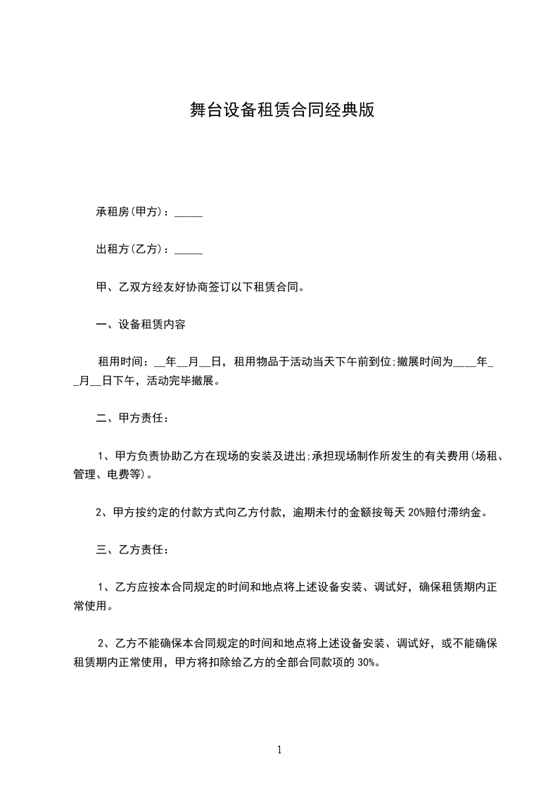 2.出租方机械设备必须在合同约定的起始时间进场达到正常运行条件,否则承租方将按日租金的双倍计收逾期违约金。
