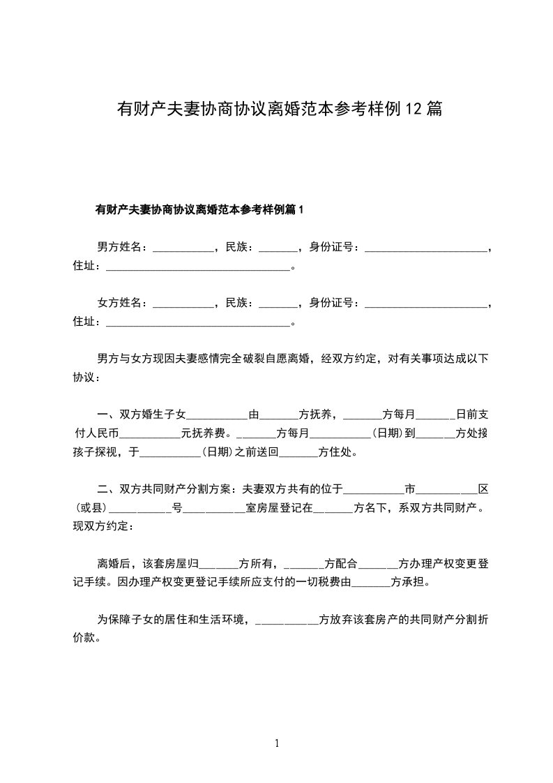 有财产夫妻协商协议离婚范本参考样例篇12