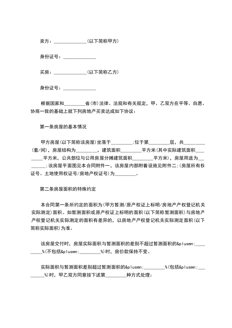 第二条房屋面积的特殊约定