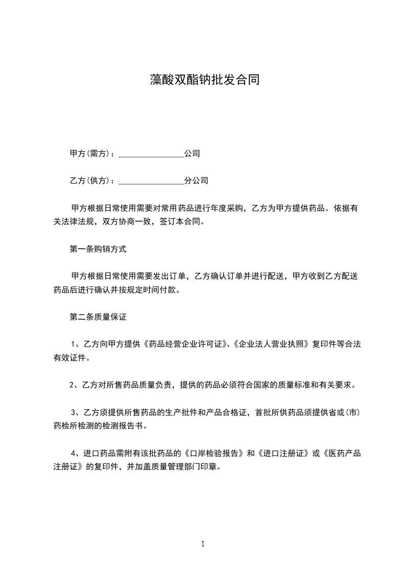 1、乙方向甲方提供《药品经营企业许可证》、《企业法人营业执照》复印件等合法有效证件。
