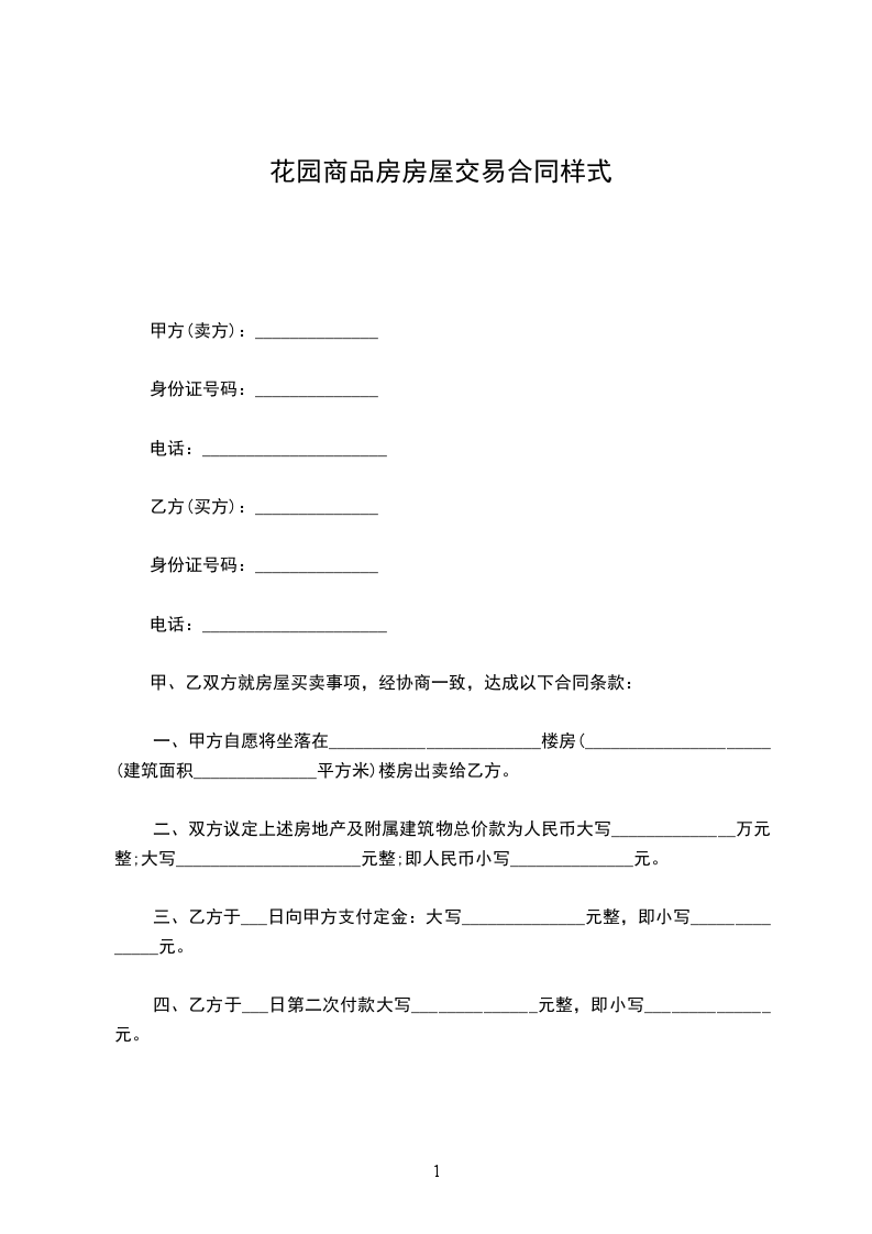 一、甲方自愿将坐落在________________________楼房(_____________________(建筑面积______________平方米)楼房出卖给乙方。