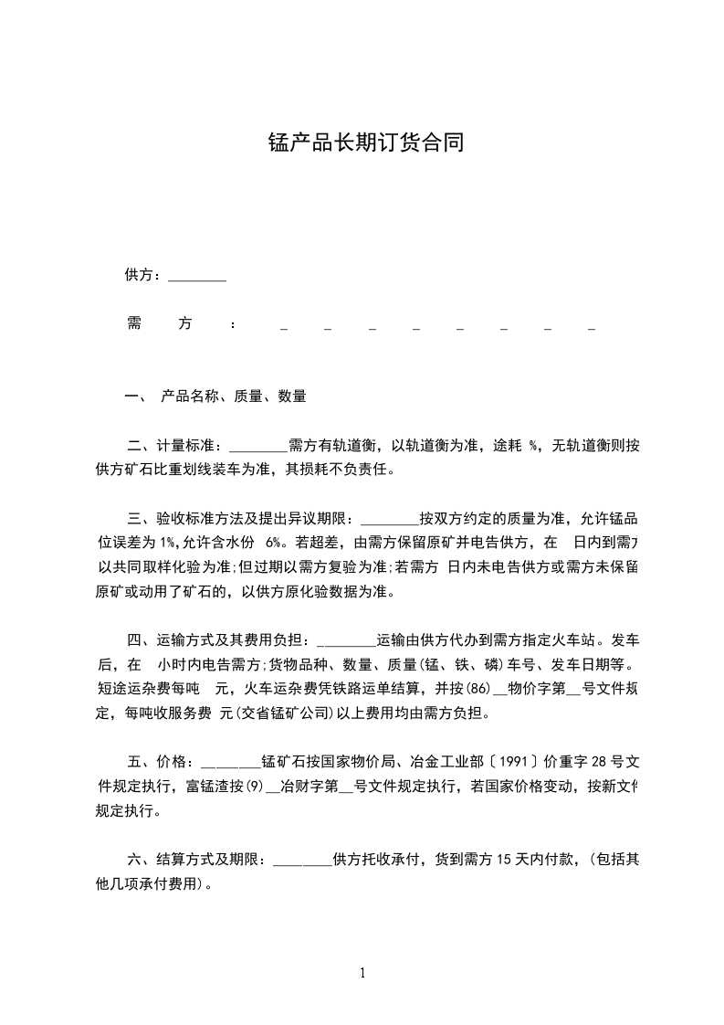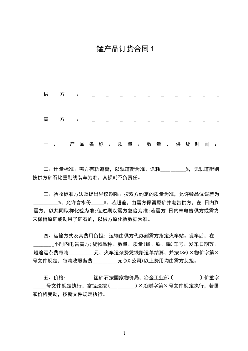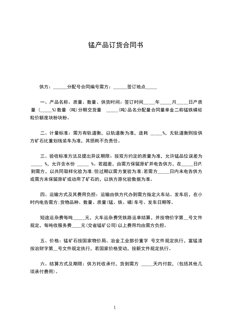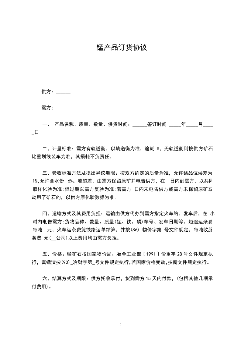 五、价格:__________锰矿石按国家物价局、冶金工业部〔__________〕价重字_____号文件规定执行,富锰渣按(__________)×冶财字第×号文件规定执行,若国家价格变动,按新文件规定执行。