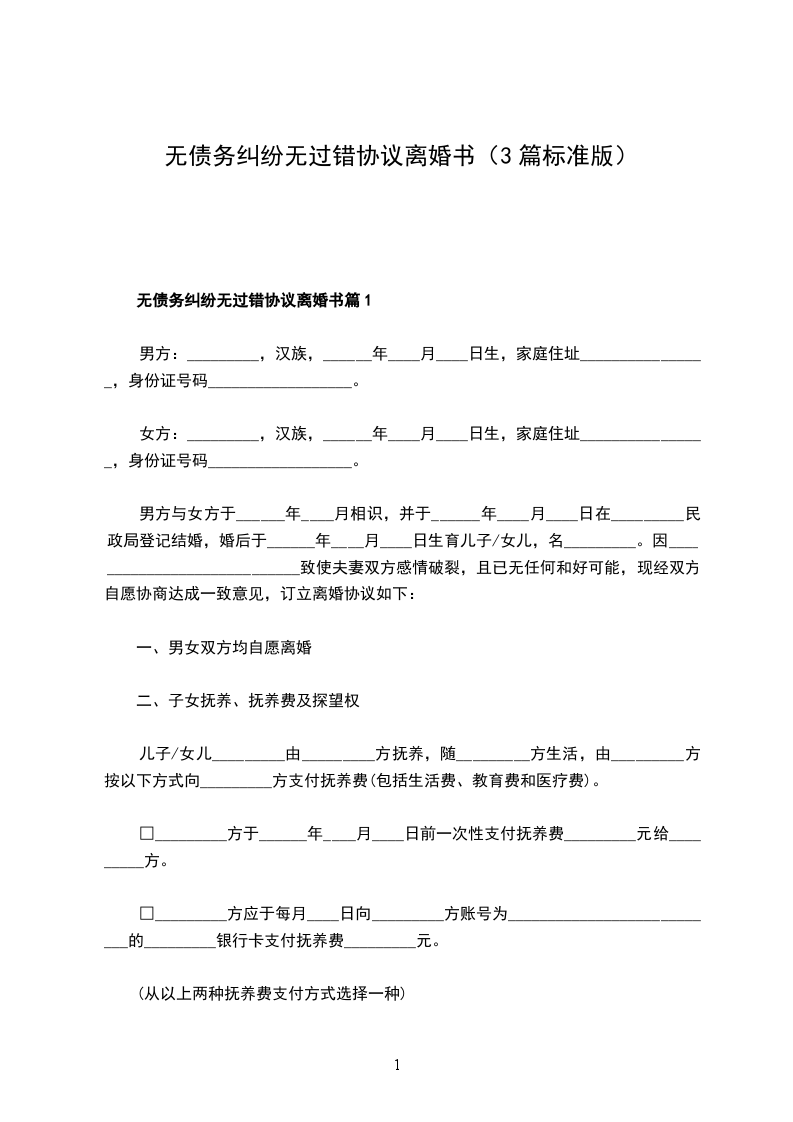 三、债权债务事项:男女双方婚姻存续期间无共同债权债务,任何一方隐瞒债务的,由负债方负责承担,另一方不承担任何责任,无债权债务纠纷。