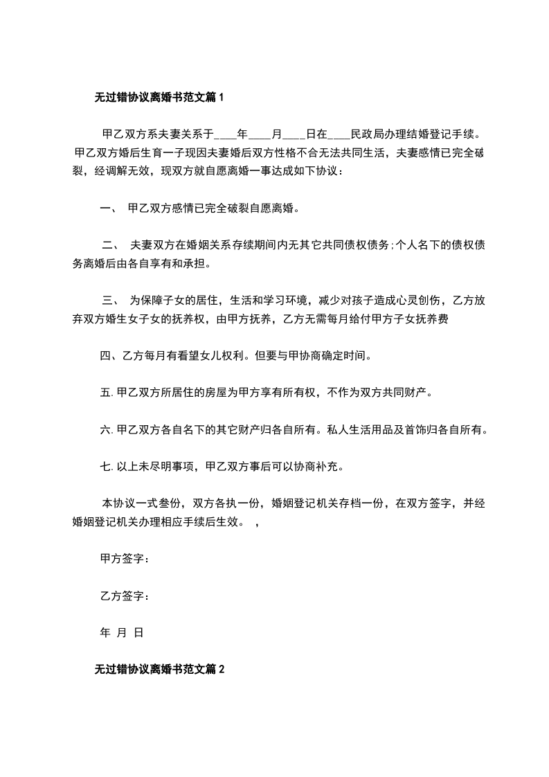 一、子女抚养事项:男女双方结婚后生有一个男孩,名叫_______,现年_______岁,归女方负责抚养,男方每月付给女方孩子抚养费_______元,直到孩子上完大学为止,将来孩子结婚等所需费用由男方负责承担,男方可以随时看望或接走孩子,无子女抚养纠纷。