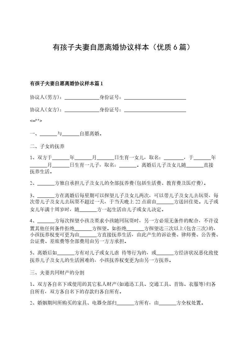 有孩子夫妻自愿离婚协议样本篇6