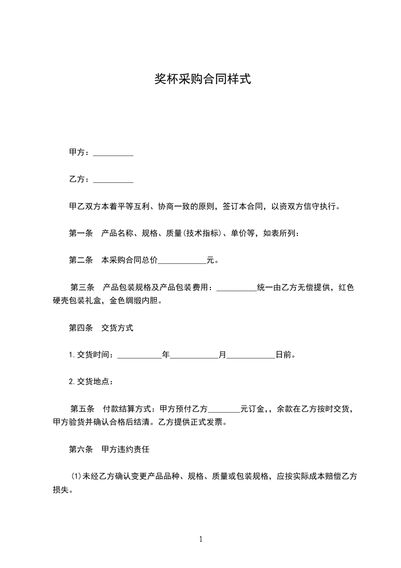 (2)未按合同规定的数量交货,而甲方仍有需要的,应照数补交,按延期交货处理。完不成合同任务,不能交货的,应偿付甲方应交货总值50%的违约金。