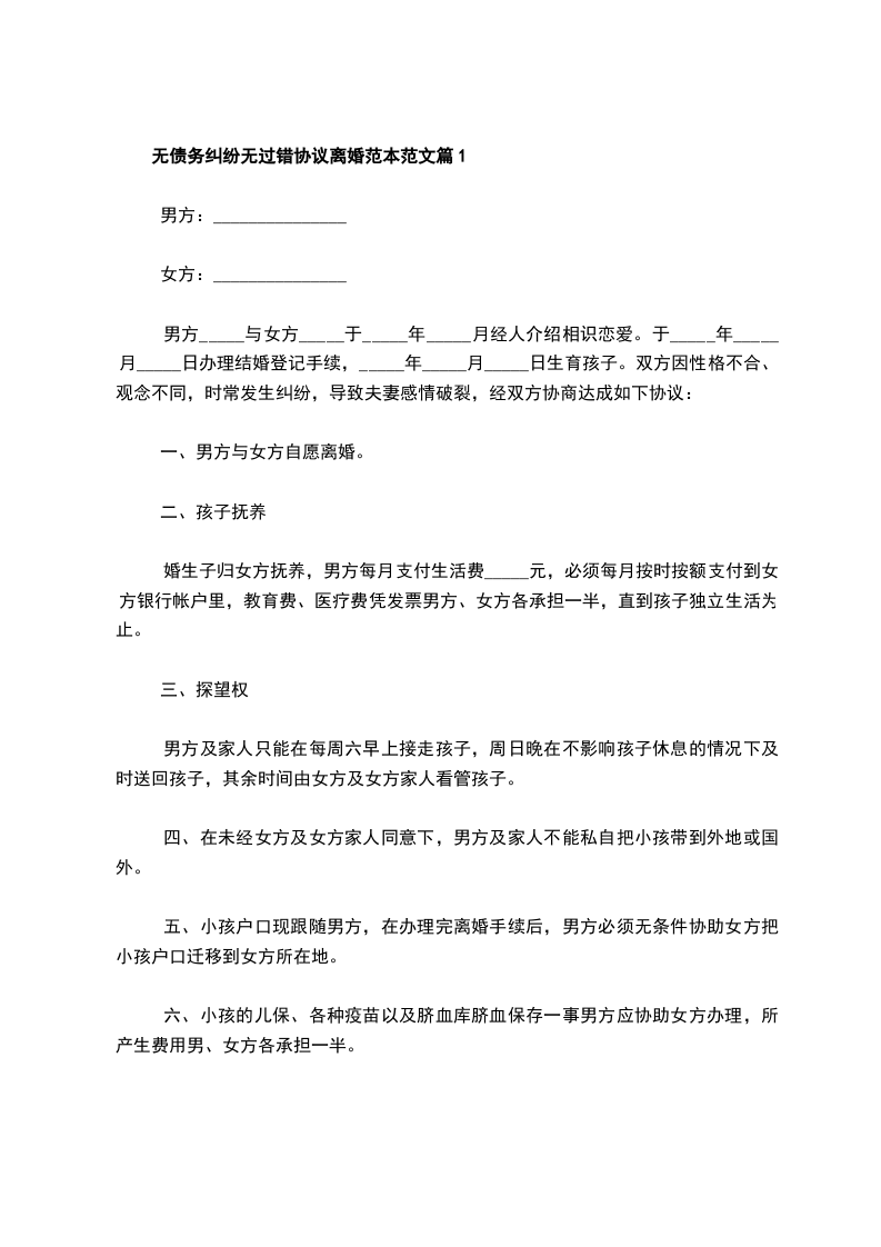 九、因支付房屋的首付款,向男方父母所借的_____万元人民币债务,由男方归还。双方无任何其他夫妻共同债权、债务。